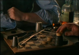 | Dáma | Červený trpaslík II: Queeg (Red Dwarf II: Queeg, 1988, GB) | A. J. Rimmer soupeří s pomocným robotem zvaným Robík v partii dámy. Každý by usoudil, že tato partie je pro Rimmera beznadějně ztracena. Ne tak Rimmer. Zbývá mu jediný kámen a jediný tah, po kterém ho Robík „sejme“. Rimmer má ale plán... (obrázek) |