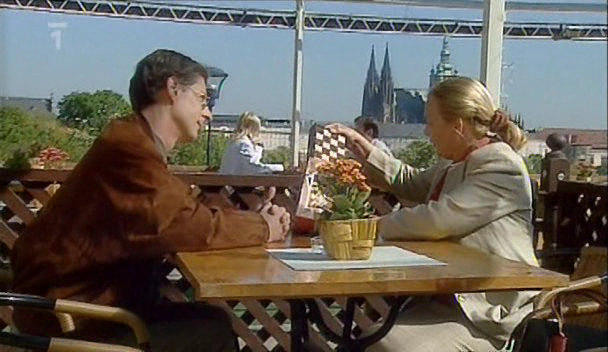 | Šachy | Don Matteo: Cizinec (Don Matteo: Lo straniero (I. řada, 1/16), 2000, It) | Kněz Don Matteo Bondini (Terence Hill) se vrací do poklidného italského městečka Gubbio. Díky svým deduktivním schopnostem, postřehu a intuici, se často plete do vyšetřování místních četníků. (obrázek) |