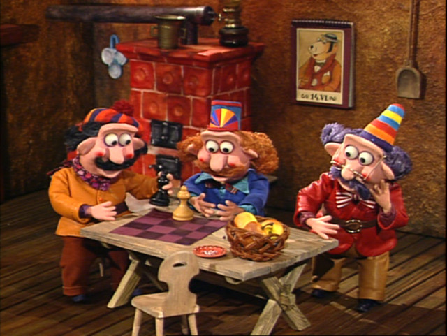 | Šachy | Kouzelný měšec (1996, ČR) | Víte, jak poznáte, že kominík je převlečený princ? Je to snadné – kominíci obvykle hrát šachy neumí, vzdělaní princové ano. (obrázek) |