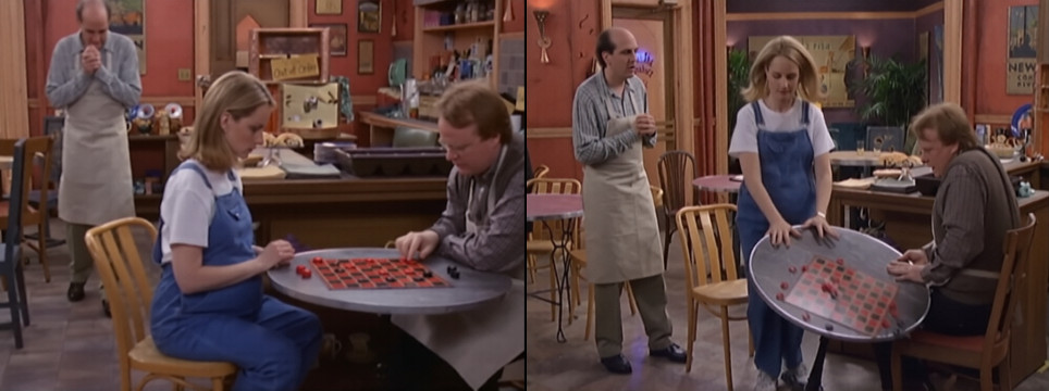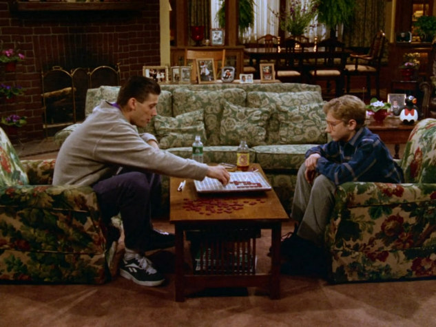 | Scrabble | Krok za krokem: Tahák (112/160) (Step by Step: Do the Right Thing, 1996, USA) | Cody hraje s Markem Scrabble. Mark se ptá: „T–S–S–J–E–E, co to je?“ Cody: „Tssjee.“ Mark: „Dobře, zkus to užít ve větě.“ Cody: „No, být či nebýt, tssjee.“ Mark rezignuje: „Když je slovem takový ‚čéče‘, může být i ‚tssjee‘.“ (obrázek) |