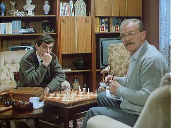 | Šachy | Četnické humoresky (7/39) (2000, ČR) | Karel Arazím (T. Töpfer) hraje před snídaní šachy s Bedřichem Jarým (I. Trojan). (obrázek) |