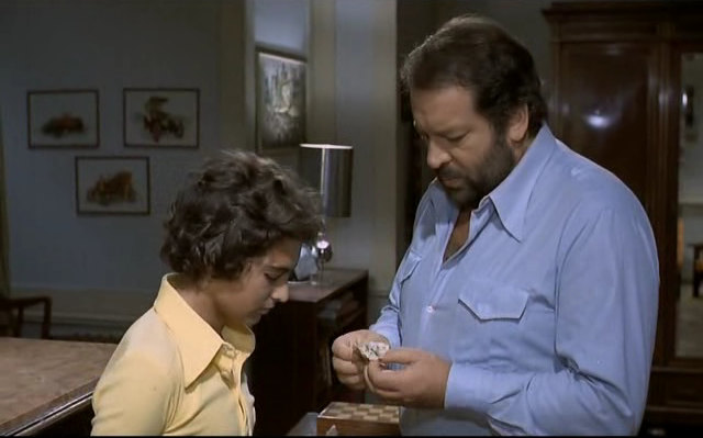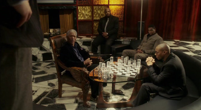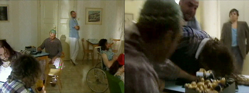 | Šachy | Šimon a Matouš (Il Vangelo secondo Simone e Matteo, 1975, It) | Morgan a jeho banda si v kanceláři vysvětlují neúspěch předchozí akce a plánují, jak se zmocnit pašovaných diamantů, které Šimon a Matouš někam zašantročili i se soškou panny Marie. V pozadí stojí stolek s šachy. |