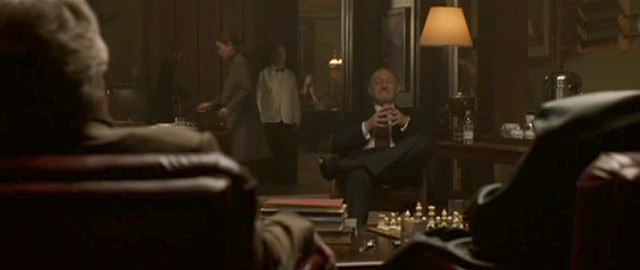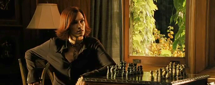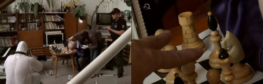 | Šachy | Mazaný Filip (2003, ČR) | Velma (V. Cibulková) zastřelí v bytě soukromého detektiva Phillipa Marlowea (T. Hanák) dva mafiány. V pozadí je vidět šachový stolek s rozestavěnými figurami. Když přijede policie a sbírá důkazní materiál, sebere i šachové figury. (obrázek) |