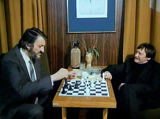 | Šachy | Samorost (1983, ČSR) | Docent Šťastný (M. Lasica) je zásadový muž, který je nucen přistoupit na to, že se zapojí do protekčního řetězce. Aby se jeho dcera dostala na medicínu, musí on pomoct jinde. Nad partií šachu mu to vysvětluje kamarád, který řetěz organizuje (J. Císler). (obrázek) |