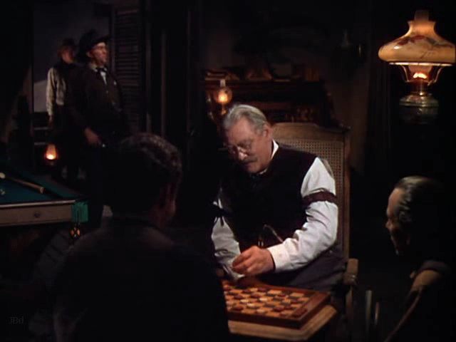 | Šachy | Žhavá sedla (Blazing Saddles, 1974, USA) | Neohrožený černošský šerif Bart (Cleavon Little) a opilecký pistolník Jim, dříve zvaný The Waco Kid (Gene Wilder) se blíže seznamují u stolku s šachy. Waco Kid se nechá přemluvit, aby ukázal jak je rychlý. „Vidíš toho krále? Připrav si k němu ruce!“ (obrázek) |