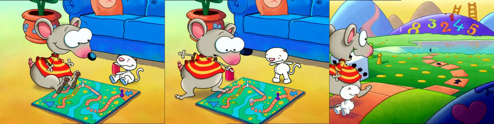| Dáma | Bořek stavitel (Bob the builder, 1999, GB) | Jeřáb Lúďa hraje poprvé dámu s nějakým týpkem, který ale podvádí. Kamarádi ostatní auta a silniční stroje se dívají. Místo kamenů mají pneumatiky a silniční kužely. Výsledek? „To snad ne, porazil mě jeřáb!“ (obrázek) |